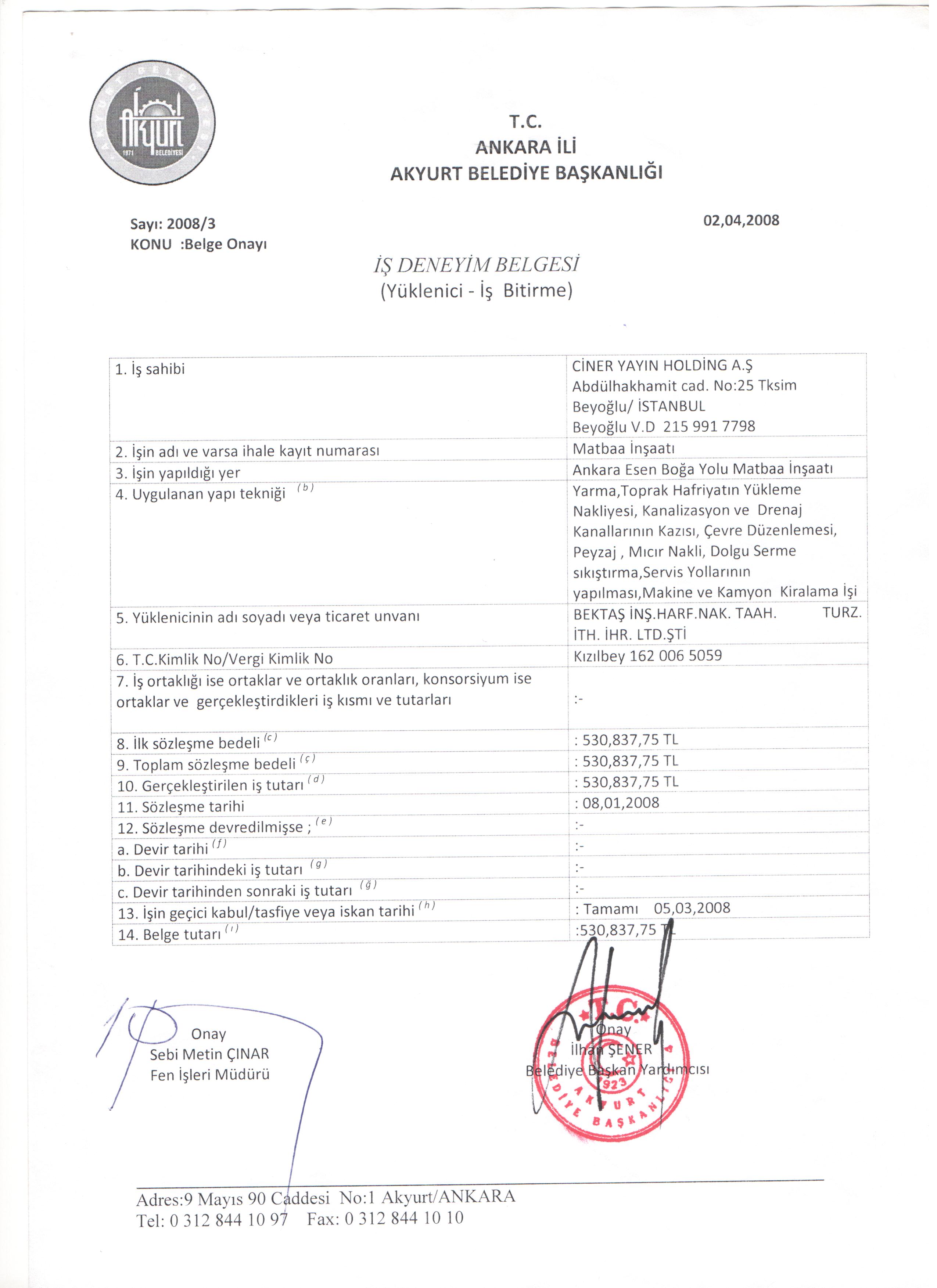 Yarma,Toprak Hafriyatın Yükleme Nakliyesi, Kanalizasyon ve Drenaj Kanallarının Kazısı, Çevre Düzenlemesi, Peyzaj, Mıcır Nakli, Dolgu Serme sıkıştırma,Servis Yollarının yapılması,Makine ve Kamyon Kiralama işi